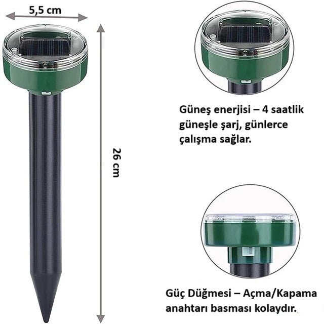 750-1000 M2 Düğmeli Solar Etkili Yılan Fare Köstebek Ve Akrep Kovucu