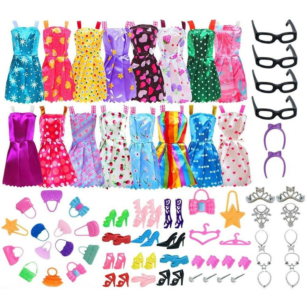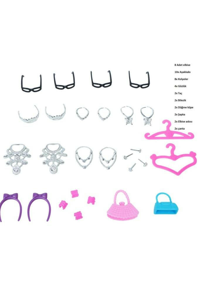 Barbie Bebekler Için 42 Parça Aksesuar Kıyafet Ayakkabı Çanta Askı Gözlük Seti