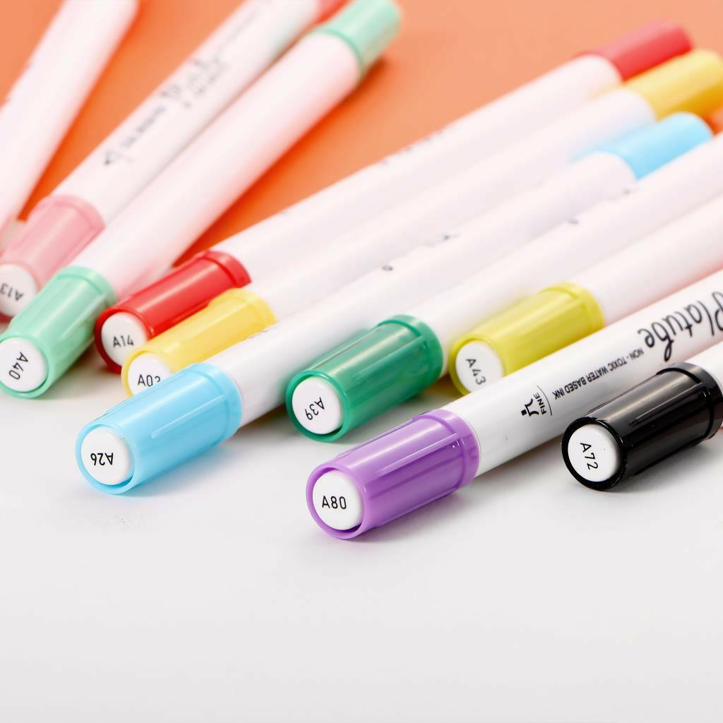 Çift uçluişaretleyiciler,sanat projelerinize çok daha fazla eğlence katacak hem ince biruca hem deesnek bir fırça ucuna sahiptir. 0,4 mm sert uçla ultra ince çizgilerve birdeğişiklikle ince, orta veya kalın vuruşlar oluşturabilirsiniz.fırçabasıncında.