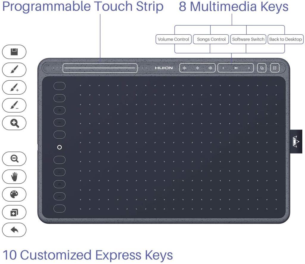 • Huion HS611 size iş ve eğlence büyük bir kombinasyon sunmak için çizim panelimultimedya tuşları eklemek için cesur bir deneyin.