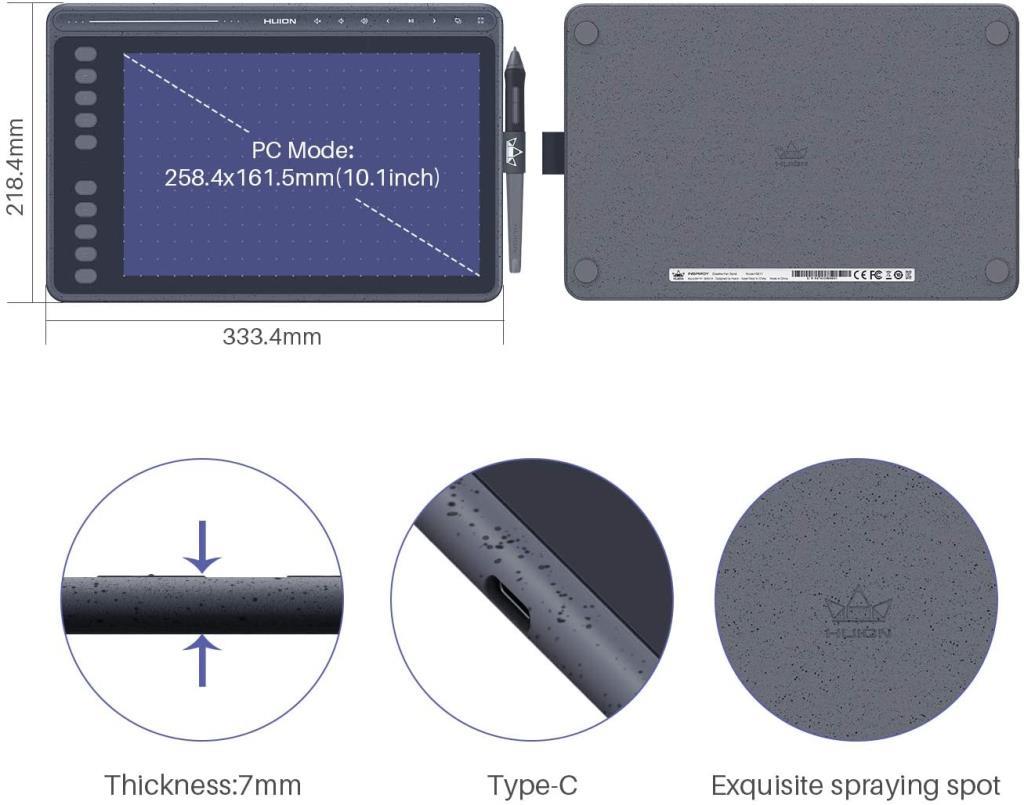 • Bu Huion Sketch, Illustrator, Photoshop, SAI, Mediband ve benzeri dahil olmak üzere en yaratıcı yazılım ile çalışır!