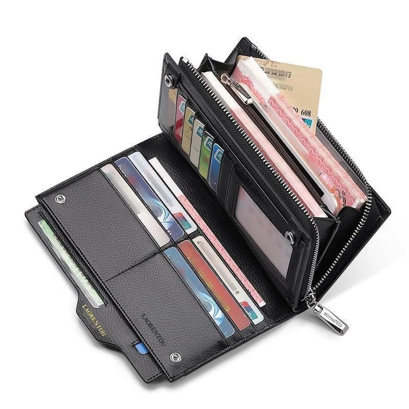 LAORENTOU BUSINESS İTALYAN DERİ-UZUN ERKEK CÜZDAN-ERKEK KARTLIK SİYAH