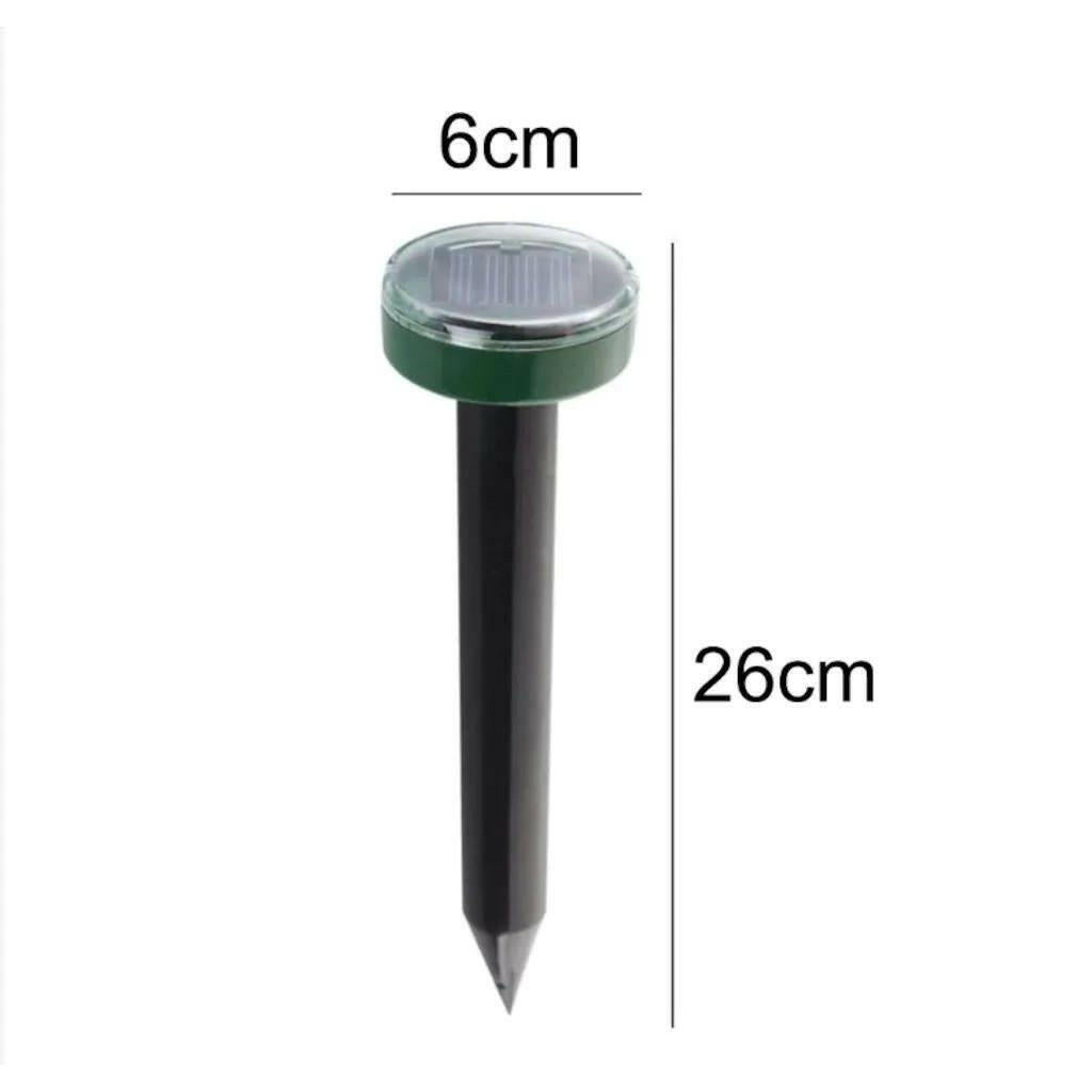 Güneş sonik köstebek kovucu titreşir ve toprak altındaki ve üstündeki kemirgenleri püskürtmek için her 30 saniyede bir farklı olarak 400HZ düşük frekanslı sonik darbeler yayar.