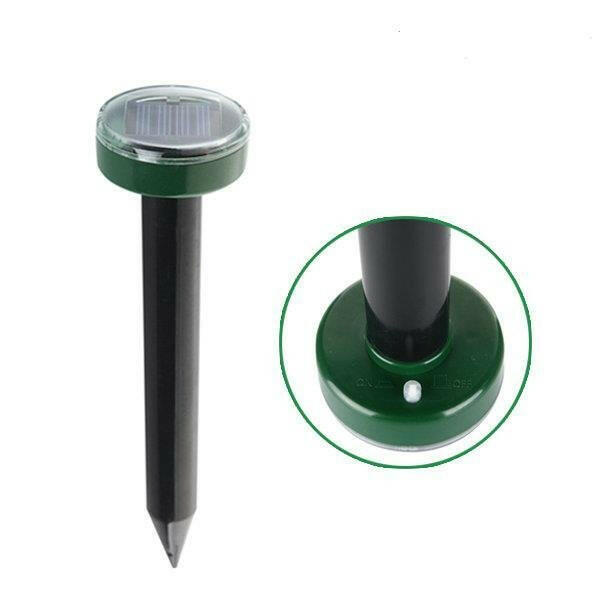 Güneş sonik köstebek kovucu titreşir ve toprak altındaki ve üstündeki kemirgenleri püskürtmek için her 30 saniyede bir farklı olarak 400HZ düşük frekanslı sonik darbeler yayar.