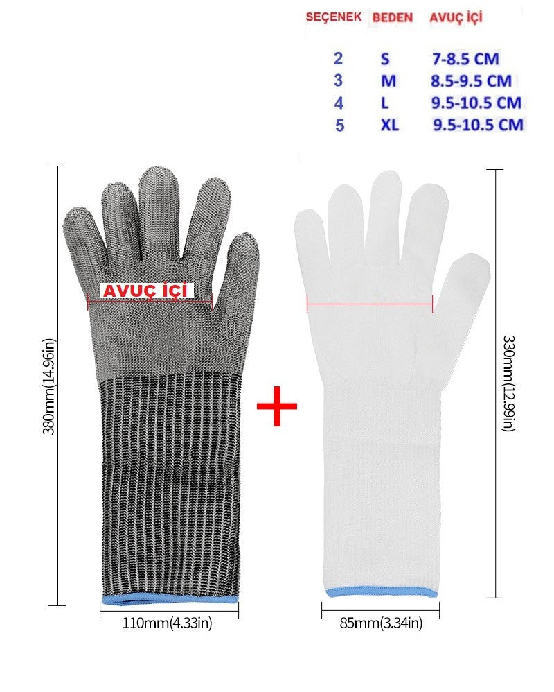 Uzun Kasap Eldiveni Kesilmez Çelik Eldiven Paslanmaz Metal Tel Hasır Örgü