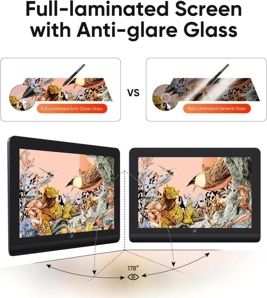 -2.5K QHD Ekran: 16 inçlik grafik tableti, 2560x1600 QHD çözünürlüğü, tam lamineli teknoloji, yansımayı önleyen işlenmiş cam, 16:10 en boy oranı, 178° geniş açılı görüş açısı benimser; bunlar, stilüs ucu ile imleç arasındaki paralaks hatalarını önlemenize yardımcı olur, her bir vuruşunuzu hassas bir şekilde konumlandırır. TÜV SÜD sertifikalı, muhtemelen zararlı mavi ışık emisyonlarını azaltarak mükemmel renk doğruluğu sunarken göz konforunu optimize eder.