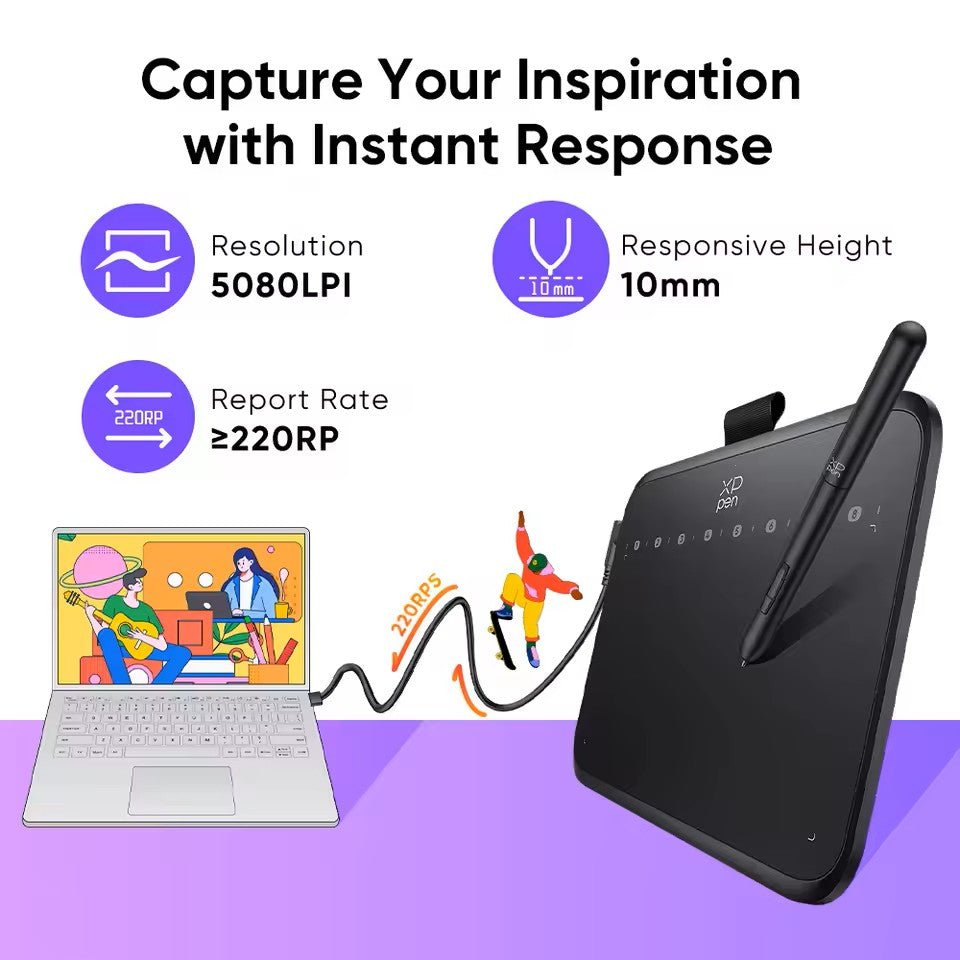 XP-Pen Deco 640 sadece bir çizim tableti değil, aynı zamanda çok yönlü bir araçtır. Windows, macOS, Android ve Linux gibi çeşitli işletim sistemleriyle uyumu sayesinde hem profesyonellerin hem de hobi kullanıcılarının vazgeçilmezi olabilir. 220 RPS raporlama hızıyla kalem hareketleri ekranla tam senkronize şekilde çalışır. 8 özelleştirilebilir kısayol tuşu ve ergonomik kalemiyle yazılımlar arasında geçiş ve komut uygulamak çok daha kolaydır.